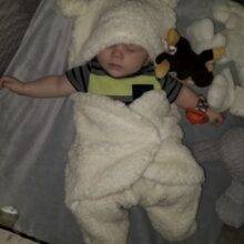 The cute white bear hoodie with a windproof cap design protects the baby’s ears and keeps them warm and stays warm all night. Designed with separate feet, it allows a baby to kick, but cannot be kicked off.