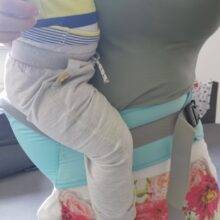 Very convenient thing, to dress simply, good Velcro and second lock latch. It's not gonna fall. The child is comfortable, sits like a shelf, my mother's hand holds, and the second hand is finally free!