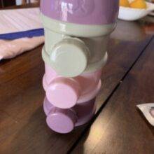 I decided to purchase this formula dispense because i wanted to use it as a snack stackable container. I always let my baby have both yogis and puffs after meal, and it was a hassle to keep them crunchy after opening. Therefore, I decided to get a formula dispenser to store multiple opened snacks. I like this container in general because it seals pretty well. I also like the color very much! I don’t see this color on a formula dispenser that much so it makes mine very distinguish from other moms’.