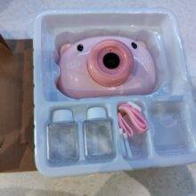 Each Cute Pig Bubble Maker comes with two 30ml containers of bubble liquid and a camera strap for carrying the device around your neck. The bubble maker requires two AAA batteries, which are not included. Note once your bubble liquid is used up, you can easily use any bubble liquid out there to continue the bubbly magic.