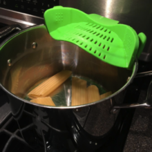Whether you’re straining freshly-boiled pasta or dumplings or just-washed lettuce and carrots, this Silicone Pot Strainer is up to the job for a mess-free, stress-free time in the kitchen.